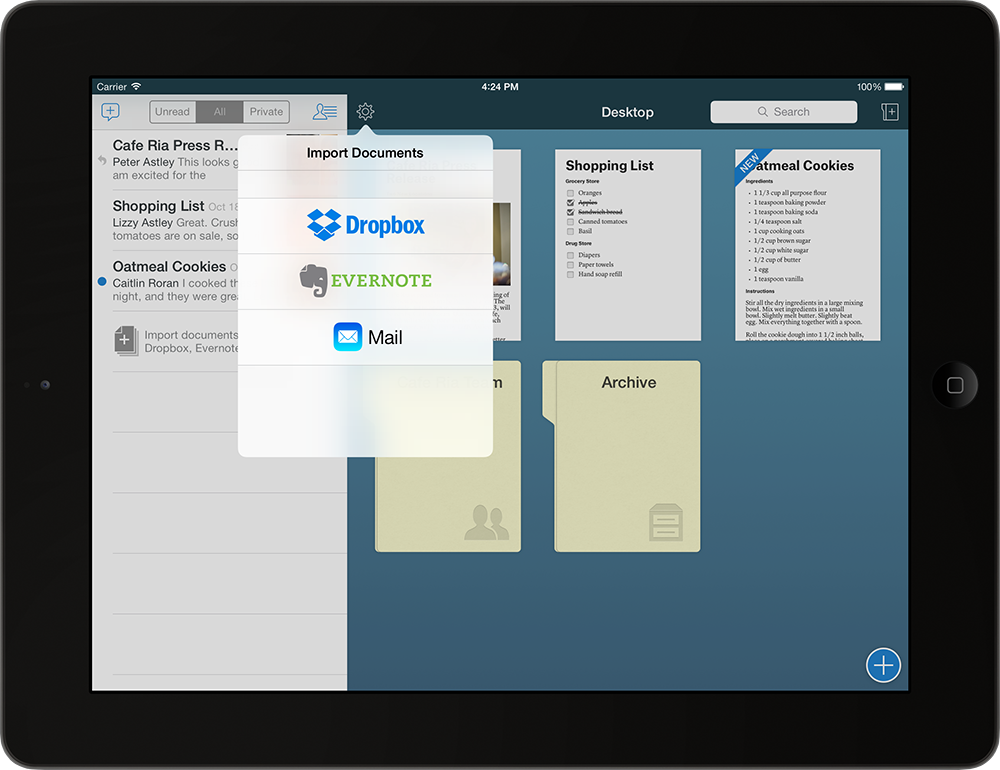 On your phone and tablet, y'all can import by selecting "Import Documents" in the gear carte du jour on your Desktop, or just tap the "Import" button at the bottom of your inbox: